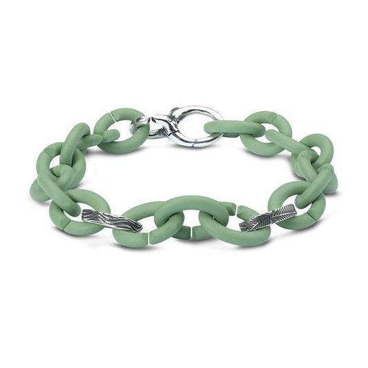 X Jewelery von Trollbeads ist ein Link-System, bei dem Kautschukelemente mit silbernen Links kombiniert werden.