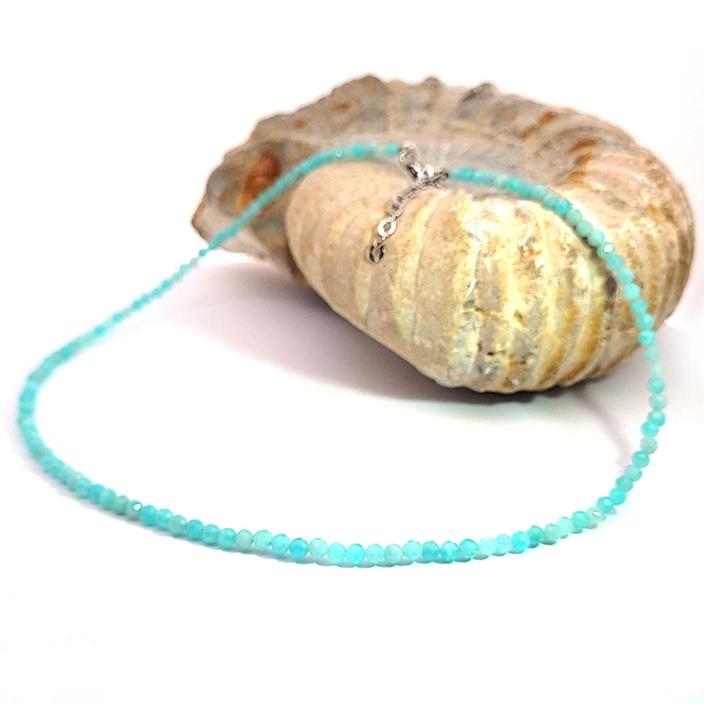 Der hellblau, grünlich bis kräftig türkise Amazonit gehört zur Gruppe der Kalifeldspäte. Seinen Namen erhielt er von Alexander von Humboldt, der ihn "Stein von Amazonien" nannte. Das Hauptvorkommen des Amazonits liegt in Brasilien.