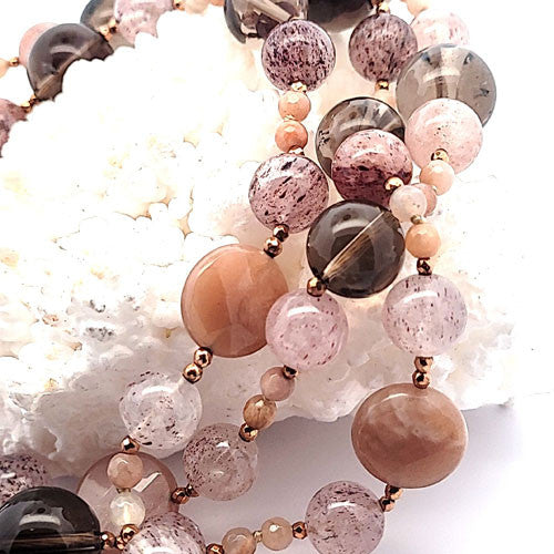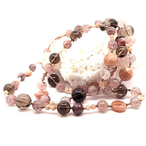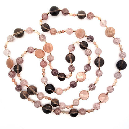 Design Edelsteinkette Mondstein & Rauchquarz lang