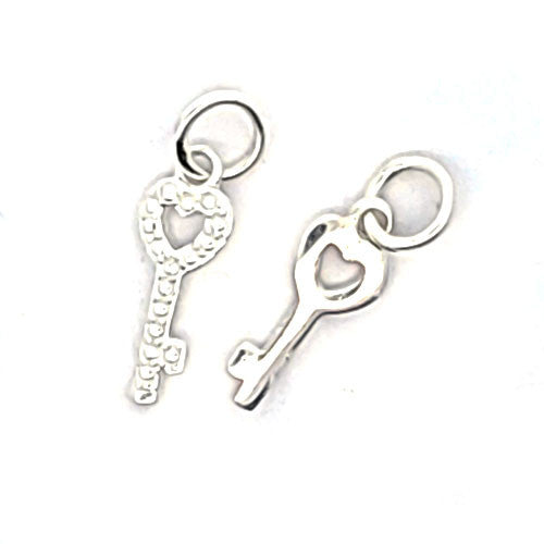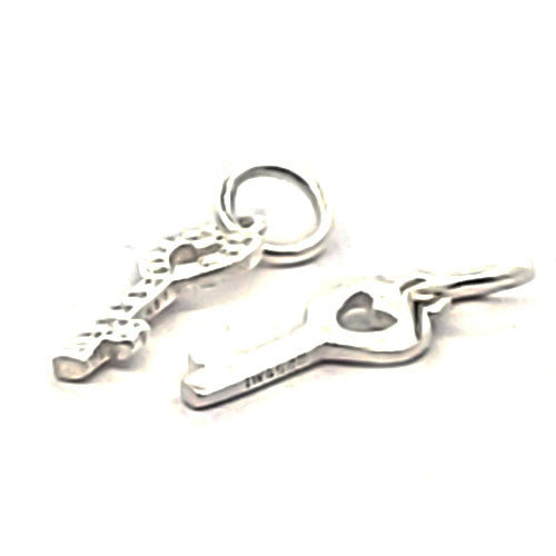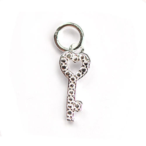 Silberanhänger "Schlüssel" aus 925 Silber, 14 x 6mm, gemessen mit fester Öse, mit aufgelöteten Silberkügelchen, Öse 6mm, Innendurchmesser 4mm