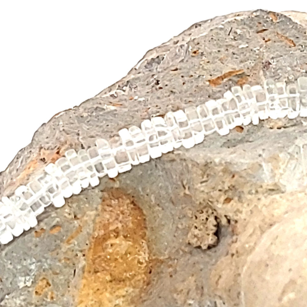 Diese Kette aus Bergkristall-Scheiben lässt sich in der Länge verstellen.