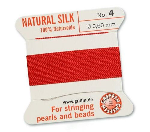 Griffin 100% Naturseide ist in 21 Farben erhältlich. Die Seide lässt sich aufgrund ihrer guten Reißfestigkeit und geringen Dehnung gut verarbeiten und knüpfen. Jedes Kärtchen enthält 2 m Faden mit einer integrierten Perlnadel.