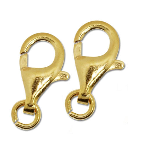 Der klassische Karabiner ist eine preisgünstige Verschlussform für fast jede Kette. Es gibt verschiedene Größen. In den offenen Bindering kann die Kette direkt eingehängt werden, bzw. für mehr Sicherheit, vorallem bei gefädelten Ketten, auch direkt in den Karabiner.