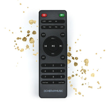 Klangei next inklusive Fernbedienung, Eibag (Transporttasche) und Ladekabel.