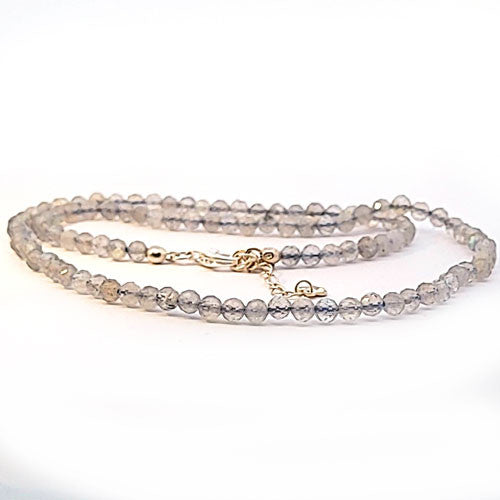 Labradorit ist ein besonderer Stein. Er schillert mit der Grundfarbe Grau in allen Farben und hat eine fast mystische Ausstrahlung. Er ist eng mit dem Mondstein verwandt.