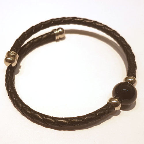 Dieser elastische Armreif ais Rindsleder wird einfach über das Handgelenk gezogen und benötigt keinen Verschluß.