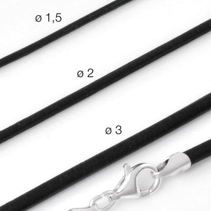 Diese praktischen Lederbänder sind vielseitig einsetzbar. Sie sind ca. 1,5 mm stark und besitzen einen Karabiner Verschluss aus Sterling Silber. Es gibt verschiedene Längen und Farben zur Auswahl.