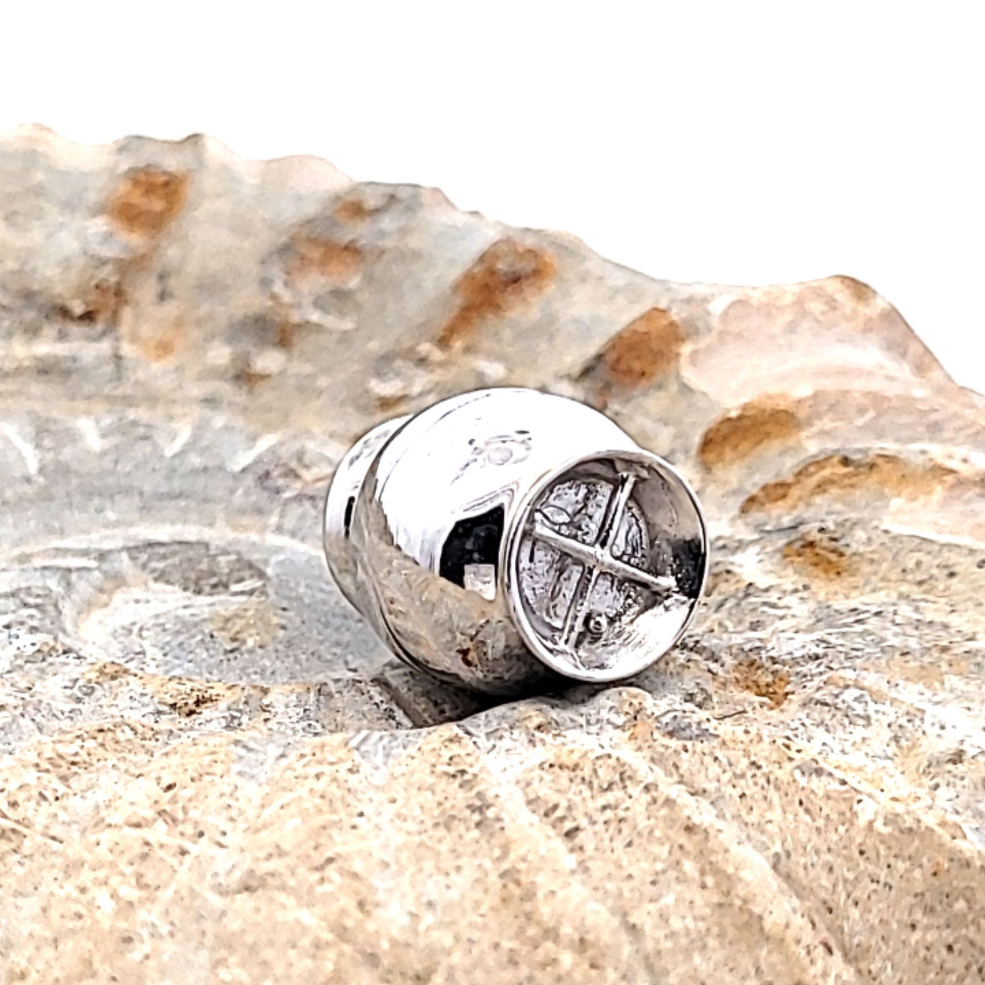 925 Sterling Silber, rhodinier, poliert. Durchmesser: 13 mm, Länge: 16 mm.