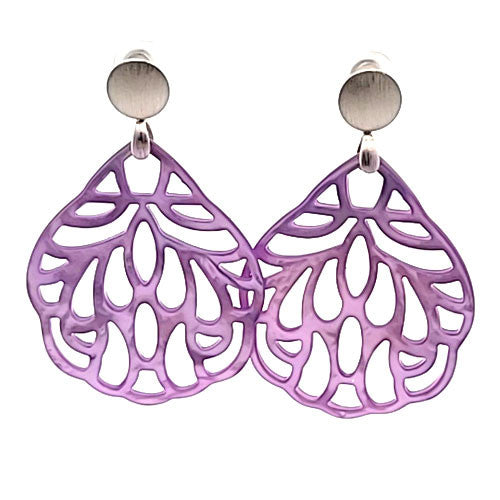 Unsere Ohrringe aus Perlmutt werden teilweise gefärbt. Der Färbe-Prozess wird in einer Firma in Österreich durchgeführt, die darauf spezialisiert ist. Denn das Einfärben von Perlmutt ist ein sehr komplizierter Vorgang, denn bei absoluter Farbechtheit muss das Perlmutt typische Schimmern natürlich erhalten bleiben.