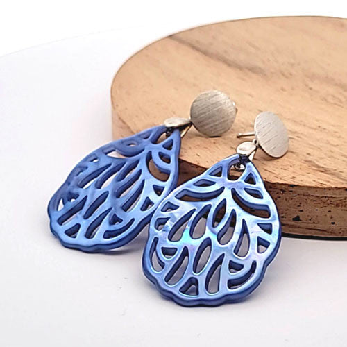 Unsere Ohrringe aus Perlmutt werden teilweise gefärbt. Der Färbe-Prozess wird in einer Firma in Österreich durchgeführt, die darauf spezialisiert ist. Denn das Einfärben von Perlmutt ist ein sehr komplizierter Vorgang, denn bei absoluter Farbechtheit muss das Perlmutt typische Schimmern natürlich erhalten bleiben.