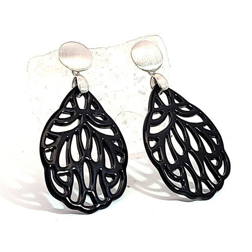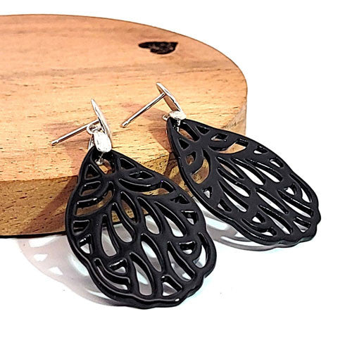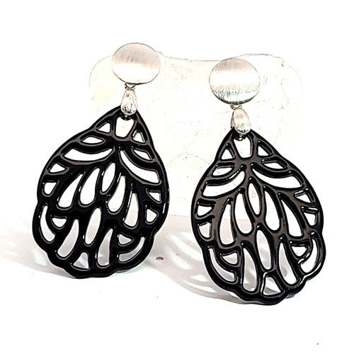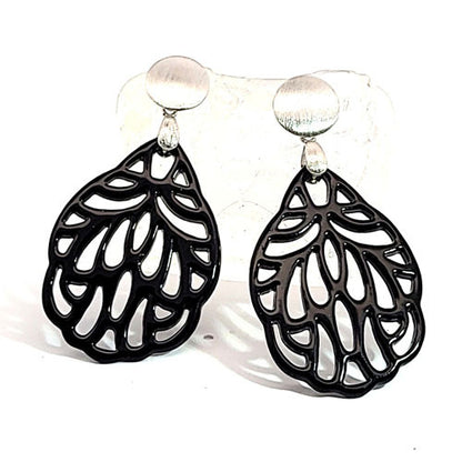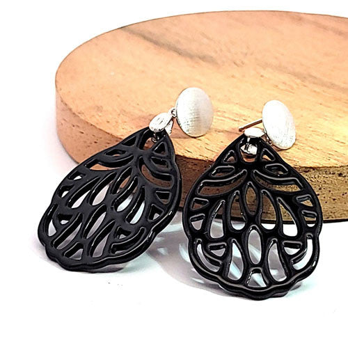 Ohrpendler Perlmutt Blatt klein, schwarz