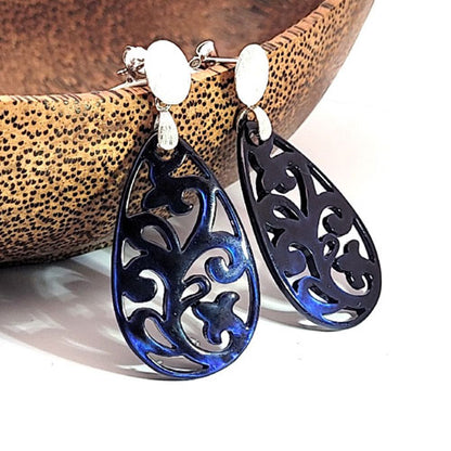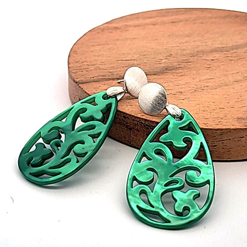 Unsere Ohrringe aus Perlmutt werden teilweise gefärbt. Der Färbe-Prozess wird in einer Firma in Österreich durchgeführt, die darauf spezialisiert ist. Denn das Einfärben von Perlmutt ist ein sehr komplizierter Vorgang, denn bei absoluter Farbechtheit muss das Perlmutt typische Schimmern natürlich erhalten bleiben.