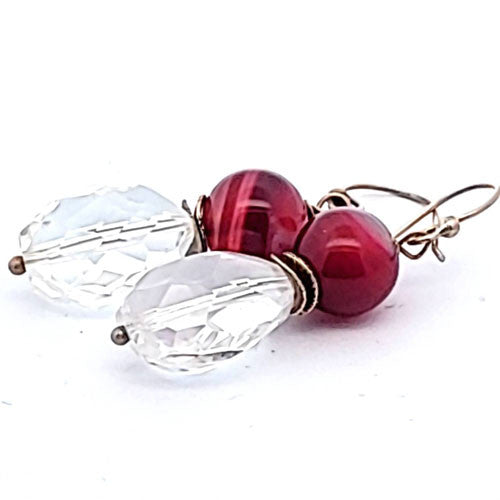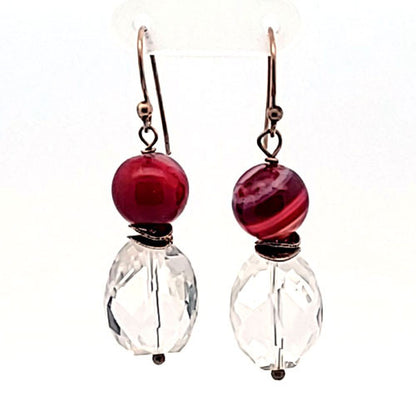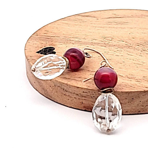 Bergkristall und der kräftige pinke Achat sind ein starkes Paar. Ohrhaken aus Silber.