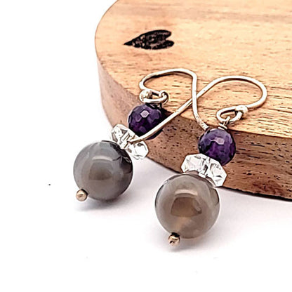 Ohrringe Botswanaachat mit Amethyst und Bergkristall