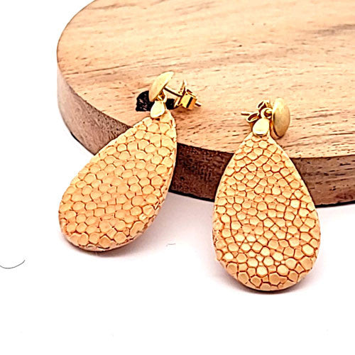 Ohrringe Rochenleder Tropfen lachs mit Stecker