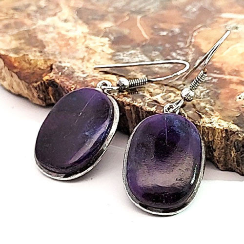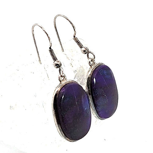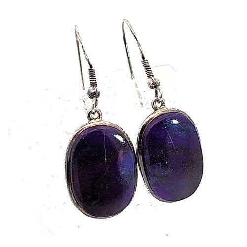 Diese Ohrringe aus Sugilith sind in 925 Sterling Silber gefaßt.