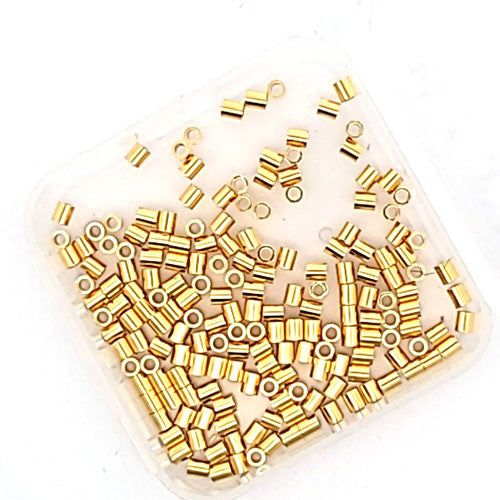 Zylinderförmige Quetschröhrchen aus Sterling Silber vergoldet für die Befestigug von Verschlüssen an Stahldrähten.