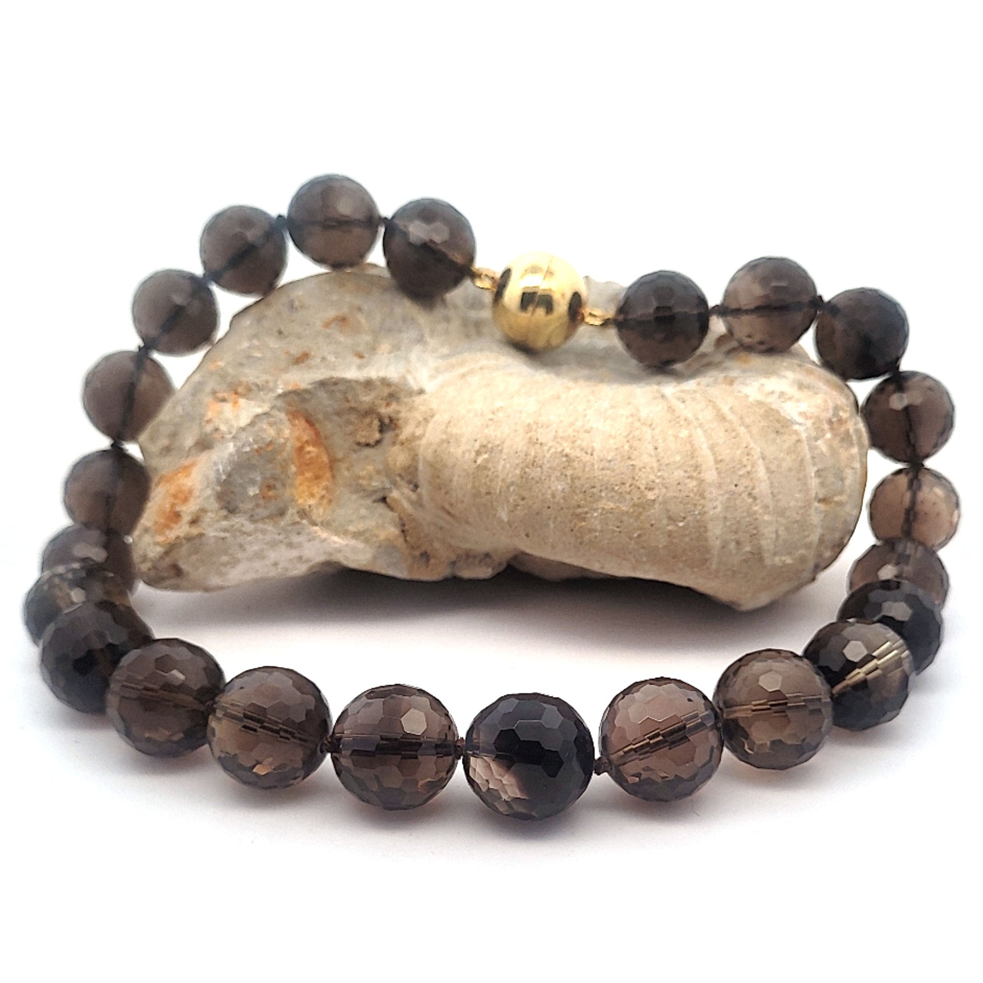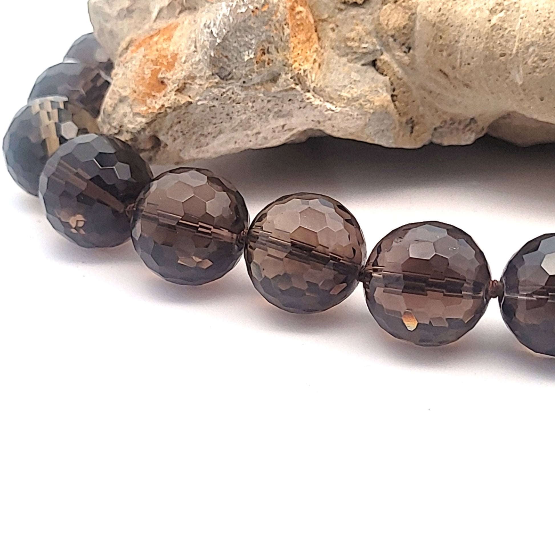 Diese edle Kugelkette aus natürlichem Rauchquarz beeindruckt durch ihre warmen braun-grauen Farbtöne und die charakteristische Transluzenz des Edelsteins. Die sorgfältig geschliffenen Kugeln schaffen ein harmonisches Schmuckstück von zeitloser, erdiger Eleganz.