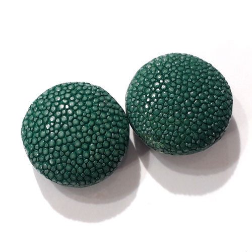 Rochenleder wird in unterschiedlichen Farbtönen eingefärbt werden, teilweise wird die Lederhaut angeschliffen, sodass ein charakteristisches getupftes Muster entsteht. Rochenleder ist äußerst hart und lässt sich nur schwer bearbeiten. Doch gerade durch seine spezielle Oberflächenstruktur ist Rochenleder für Schmuckdesign etwas ganz besonderes. Die Rochenleder Tropfen und Discs oder auch Ufos genannt eignen sich natürlich auch aufgrund des geringen Gewichts, besonders gut für die Gestaltung von Ohrschmuck.