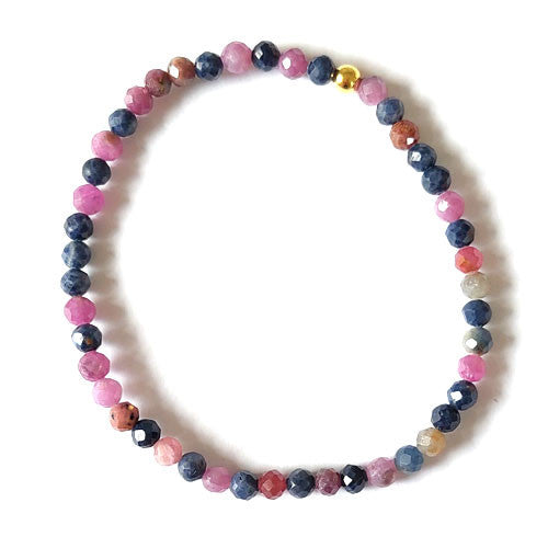 Dieses Edelsteinarmband aus Saphir und Rubin hat einen klassischen Facetten-Schliff mit Durchmesser von ca. 4 mm. Das Armband lässt sich wunderbar mit anderen zarten Armbändern kombinieren.