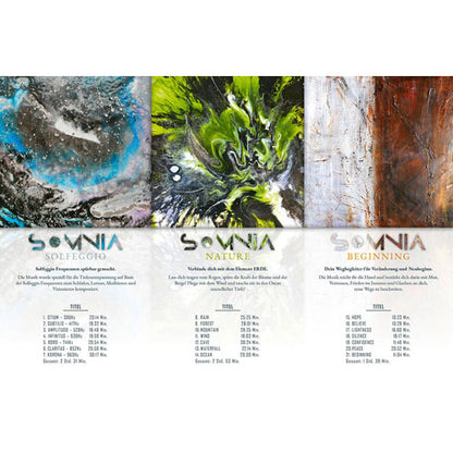 Nach dem großen Erfolg der Klangwelten hat sich Andy Eicher mit der SOMNIA Edition in seinem Tonstudio auf eine neue musikalische Reise begeben. Der Name SOMNIA kommt ursprünglich aus der römischen Mythologie und bedeutet soviel wie Träumen und Schlafen. Die SOMNIA Musik ist speziell dafür, aber auch zum Meditieren und für die Tiefenentspannung geschaffen.