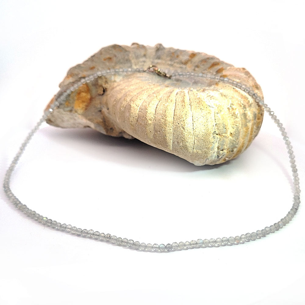 Labradorit ist ein besonderer Stein. Er schillert mit der Grundfarbe Grau in allen Farben und hat eine fast mystische Ausstrahlung. Er ist eng mit dem Mondstein verwandt.